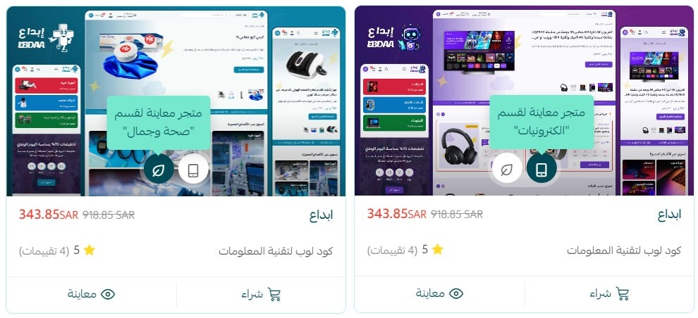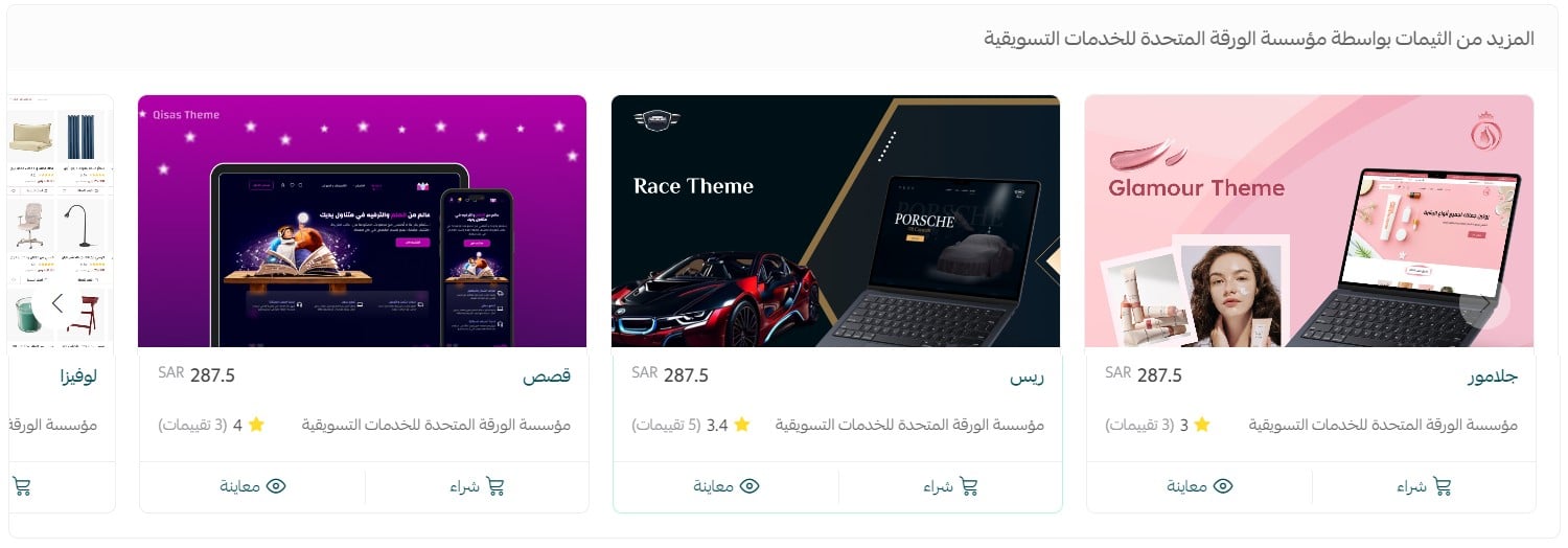 يمكنك معاينة الثيم الواحد بعدة أشكال للحصول على تصور كيف يمكن للثيم أن يتلاءم مع متجرك مهما كانت طبيعة نشاطك التجاري.