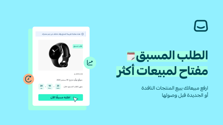 مع ميزة الطلب المسبق، يمكنك تحويل ترقب العملاء إلى مبيعات مؤكدة، وضمان استمرارية الطلبات، وفتح آفاق نمو جديدة لمتجرك قبل توفّر المنتجات فعلياً، لتبدأ مبيعاتك بخطوة استباقية وفعّالة.